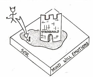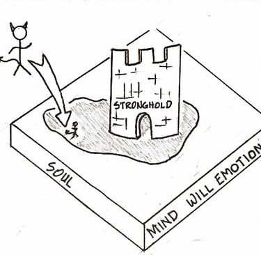 In ancient times, whenever an advancing army would capture and occupy enemy territory, they would typically build a fort or “stronghold” to secure the ground taken. And when attacked, they would retreat to the safety of the stronghold until the coast was clear. In the spiritual realm, whenever a demon captures and occupies “ground” in the soul of an individual, the demon will seek to build “strongholds” in the mind through the poison of the “world’s” wisdom that rejects the truth of God's word. Once a stronghold is established, it makes it more difficult for the individual to reject and repent of the sin(s) that give the demon the right to stand on that ground and refuse to leave. Strongholds must be torn down by identifying them and replacing them with the truth of God’s word.
